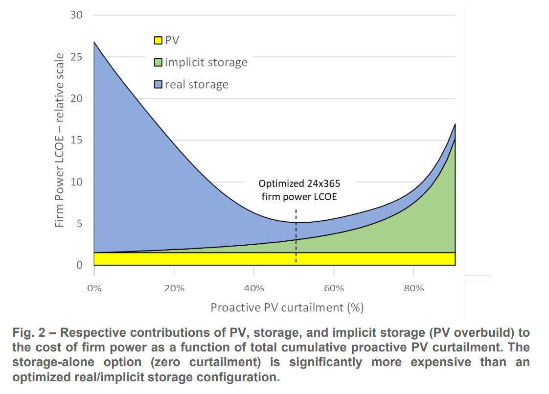 Concerning the storage size requirement I found an interesting report on this platform about "Firm power generation". The report claims that overbuilding solar PV capacity and curtailing the production on purpose is much cheaper than trying to capture 100% of production with a huge storage.