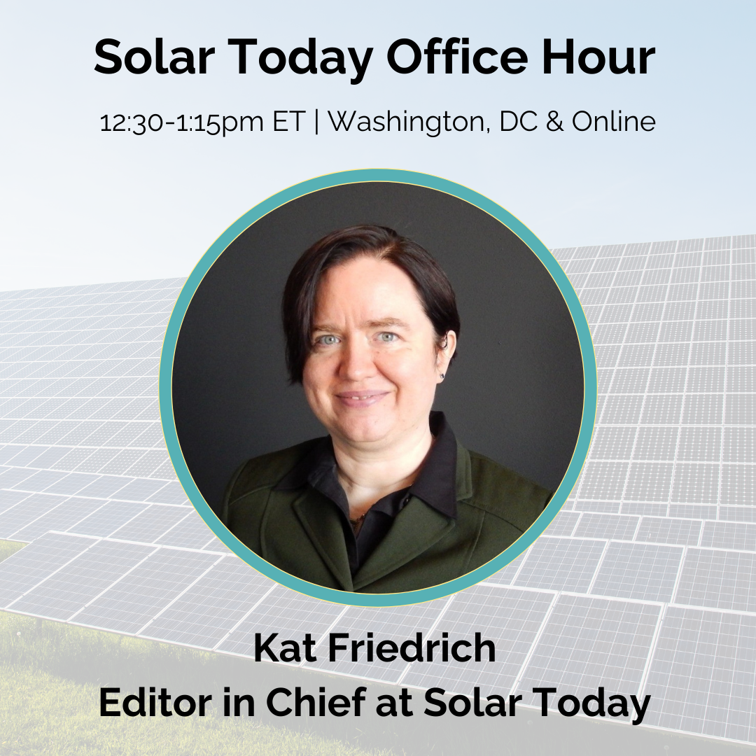 You are invited to attend our Solar Today Office Hour at our upcoming conference, SOLAR 2024, in Washington, D.C., or virtually on Wednesday, May 22, from 12:30-1:15pm ET.