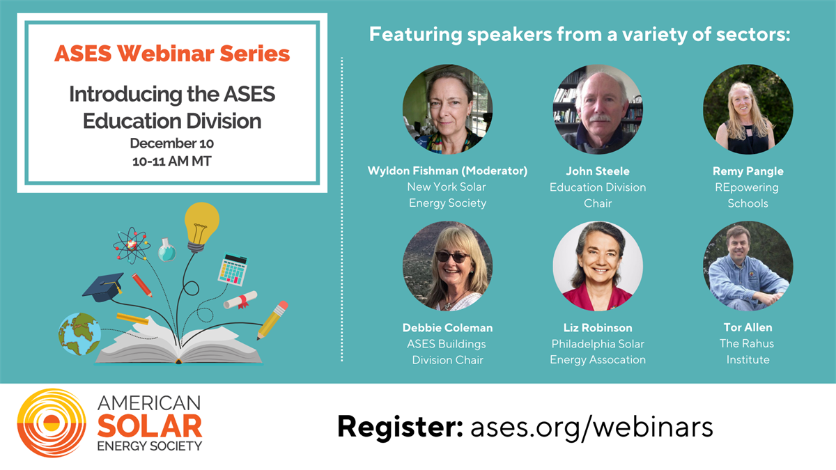 Education has always been at the heart of ASES. It's right there in our mission: ASES accelerates equitable solar adoption and universal sustainable living by educating and building community. Now, we're taking that commitment to the next level. Join us as we introduce the new ASES Education Technical Division, a hub designed to connect, inspire, and empower everyone passionate about learning and teaching renewable energy.