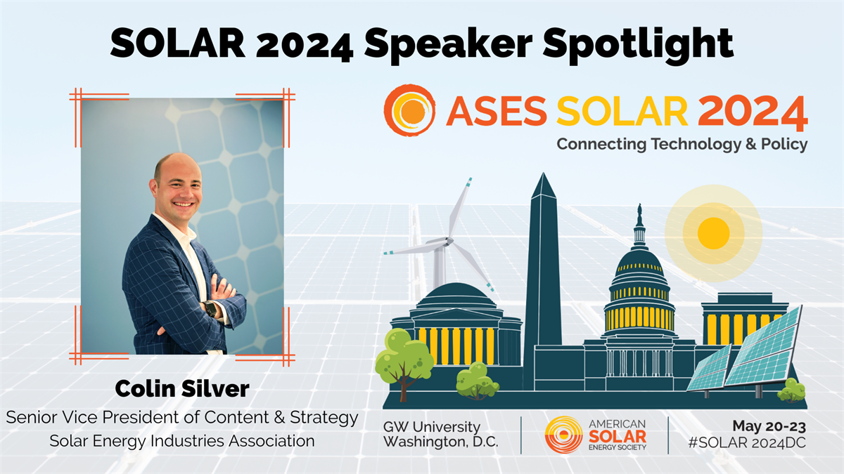 We are honored to have Colin Silver join us as one of our keynote speakers for our upcoming conference, SOLAR 2024: Connecting Technology & Policy, taking place on May 20-23 in Washington, D.C., and virtually!