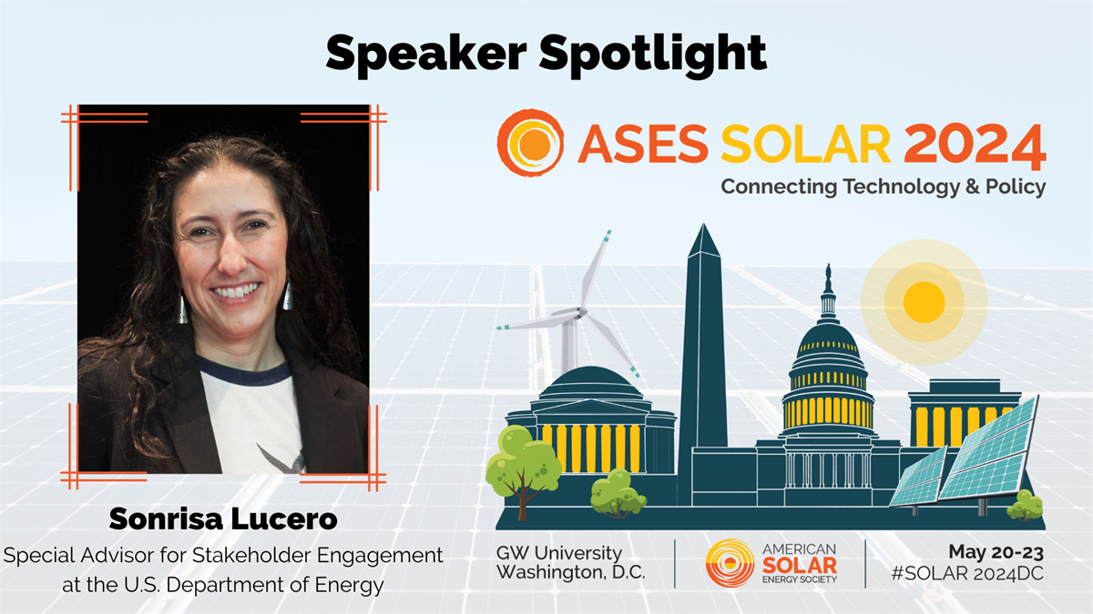 We are so excited to have Sonrisa join us for our Policy Panel Discussion: Breaking Down the Systemic Roadblocks: Improving Permitting and Siting, Educating the Public and Accelerating Implementation for a More Just and Equitable Future on Thursday, May 23 from 9:45-11 am ET. Learn more & register at ases.org/conference!