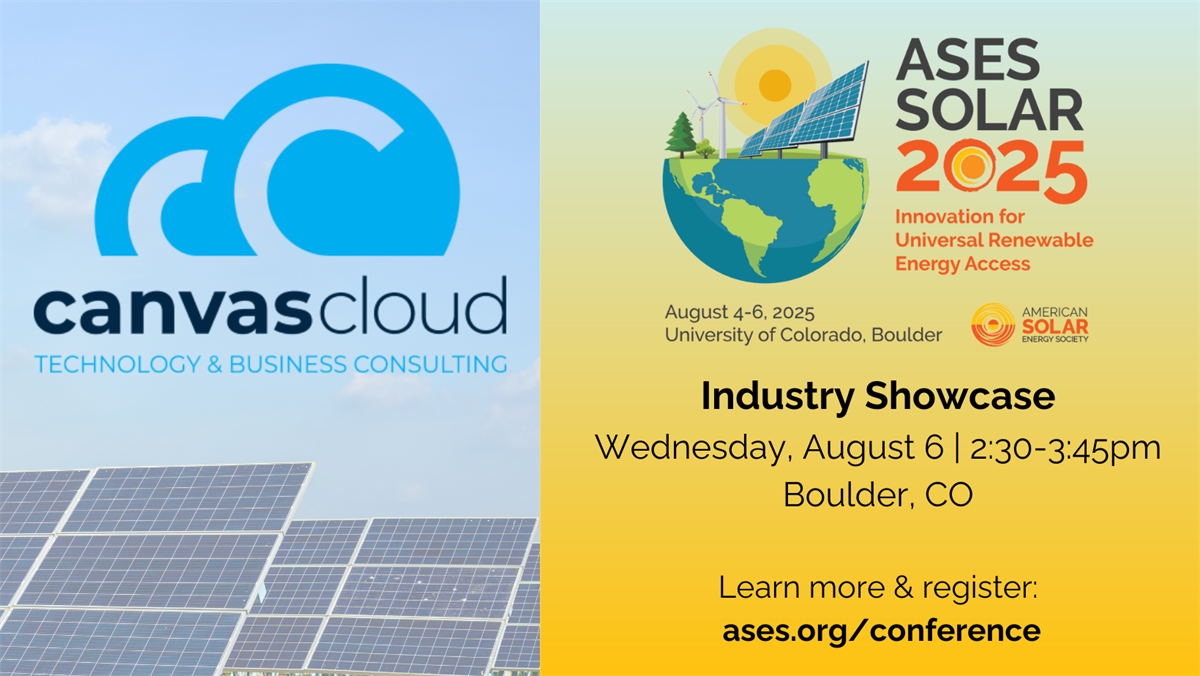 Listen to Daniel Dibble, Canvas Cloud's President, present at the SOLAR 2025 Industry Showcase on Wednesday, August 6, from 2:30-3:45pm MT in Boulder, CO. Learn more and register: ases.org/conference.