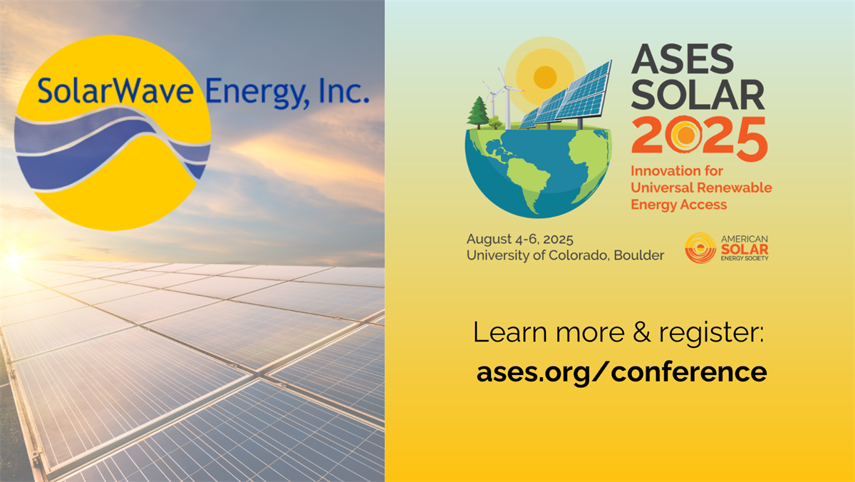 Listen to @Henry Vandermark, Solar Wave Energy, Inc.'s President, present at the SOLAR 2025 Industry Showcase on Wednesday, August 6, from 2:30-3:45pm MT in Boulder, CO. Learn more and register: ases.org/conference.