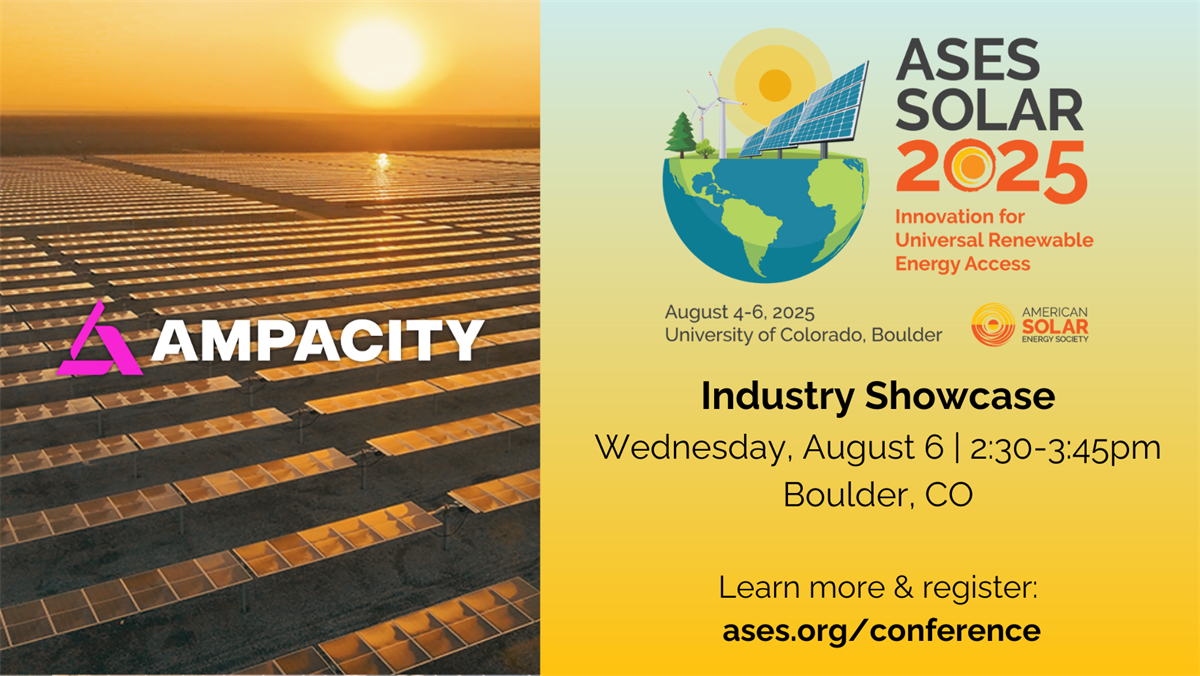 Listen to Jay Miles, Ampacity's VP of Commercial Excellence, present at the SOLAR 2025 Industry Showcase on Wednesday, August 6, from 2:30-3:45pm MT in Boulder, CO. Learn more and register: https://ases.org/conference/registration/