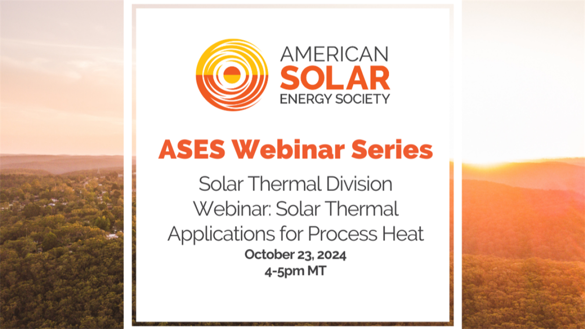 I look forward to seeing you all for today's Solar Division Webinar: Solar Thermal Applications for Process Heat at 3 pm PT / 4 pm MT / 6 pm ET.